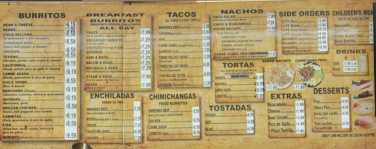 Taste is great. Most of their stuff is a mix of the same 10 ingredients on a different platform. Quantity is amazing. Their burritos are like holding a toasty newborn baby. Value is awesome in today's times. Most things are under 11 dollars. You can dine in but it's nothing fancy. It's open 24 hours